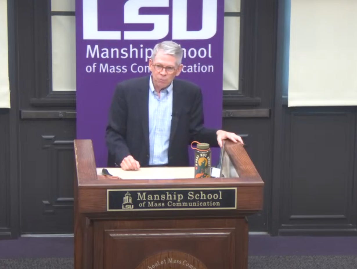 I’m retiring from the Manship School’s faculty at the end of the semester, so the school kindly gave me the opportunity to say some final words to my students …