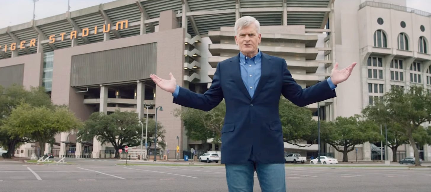 Meanwhile, Cassidy’s not without assets. He’s sitting on at least $12 million, and probably has millions more in superPAC money to count on. He has ample statewide name recognition. He has the backing of Senate Majority Leader John Thune and the NRSC, which is likely to set aside funds to defend him. He can bring prominent Senate colleagues here to vouch for him.